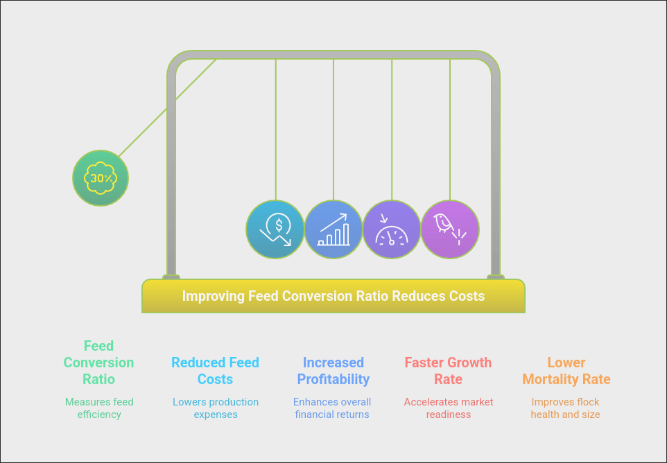 Why It Matters: Feed costs 60-70% of production expenses. Improving FCR directly reduces costs and enhances profitability.