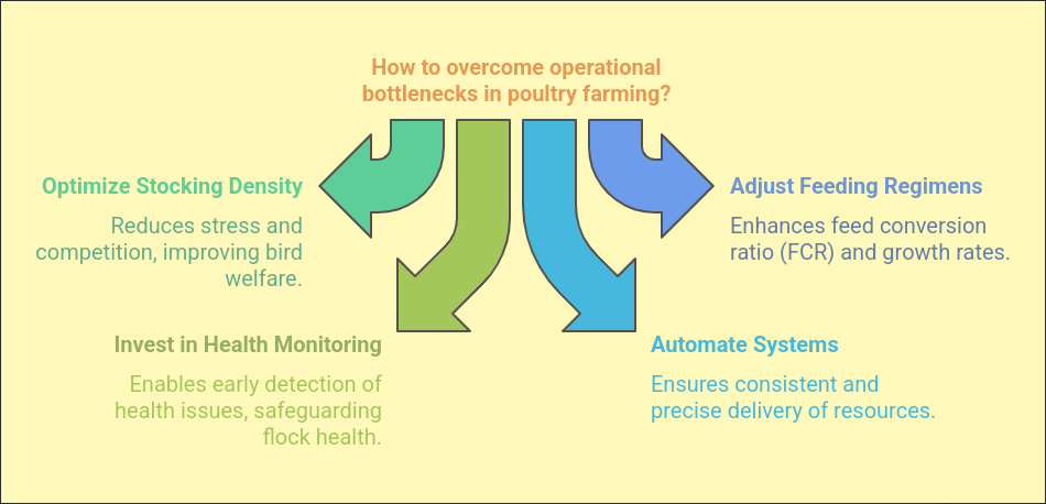 the image emphasizes the importance of implementing a multi-pronged approach to address operational challenges in poultry farming.